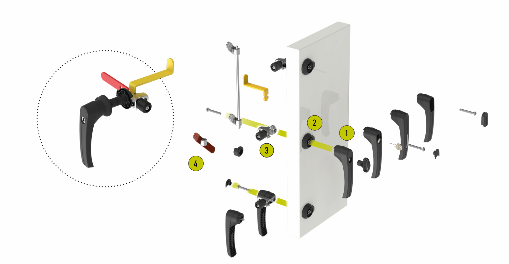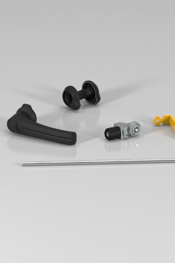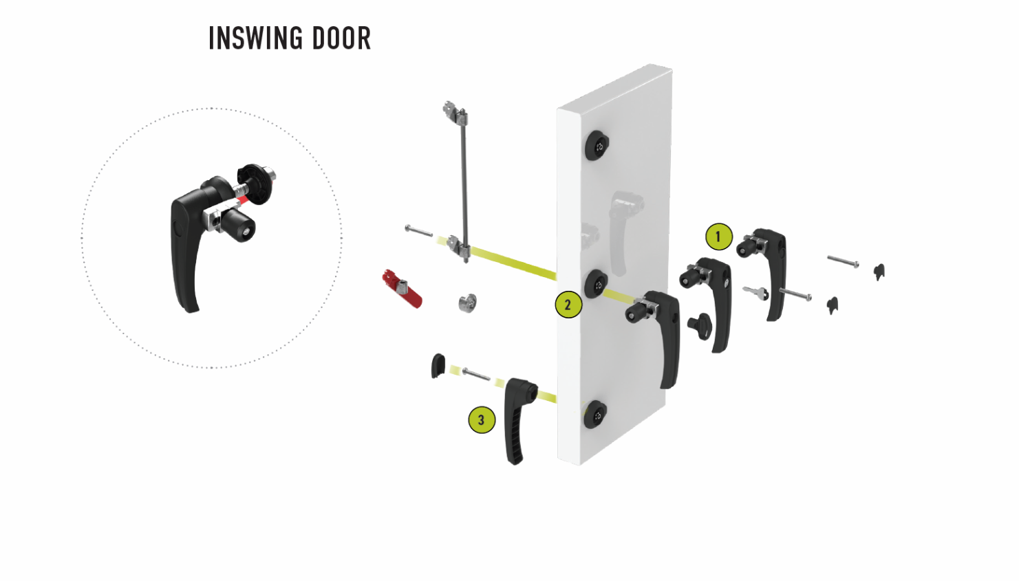 Walk-in HVAC units need an emergency handle installed on the inside of the door. In the Klima-flex 2 system you can combine a safety catch, rod link and/or inside security handle with the inside roller cam. The inside handle can be delivered with or without a fastened rod link.