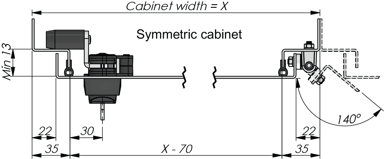 Minimized space for frame design, maximized usable cabinet width. External hinges optional with earthing kit.