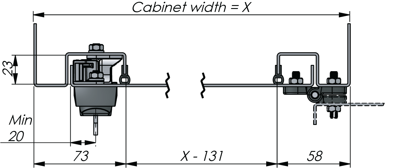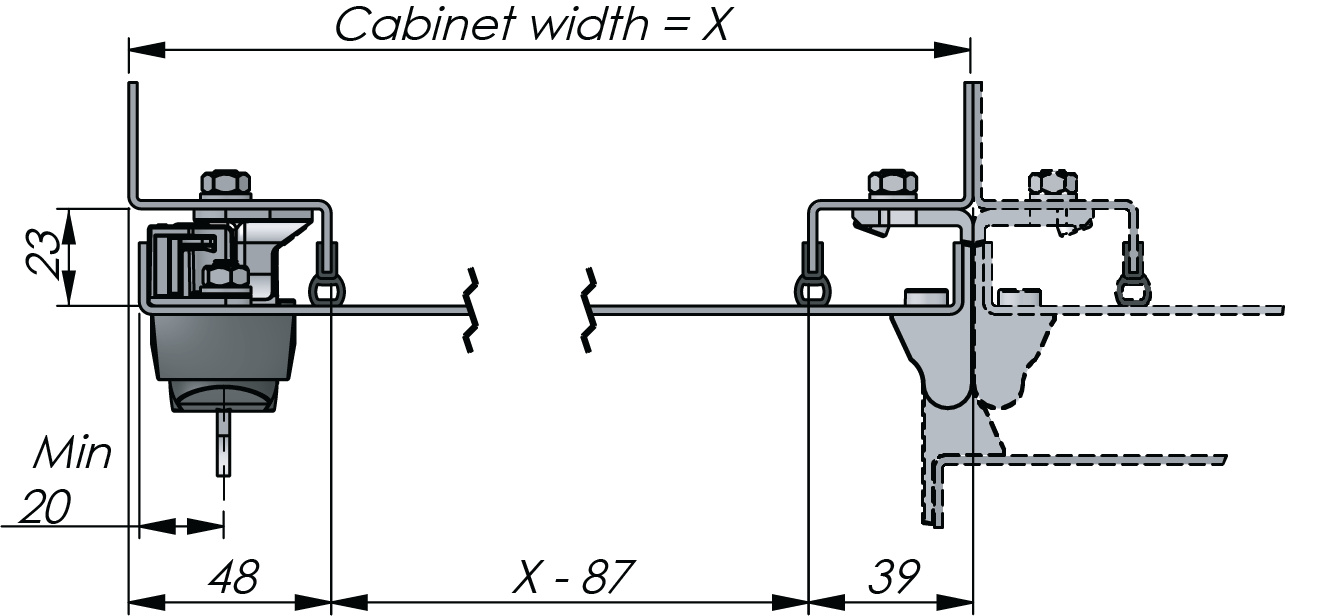 Minimized space for frame design, maximized usable cabinet width. External hinges optional with earthing kit.