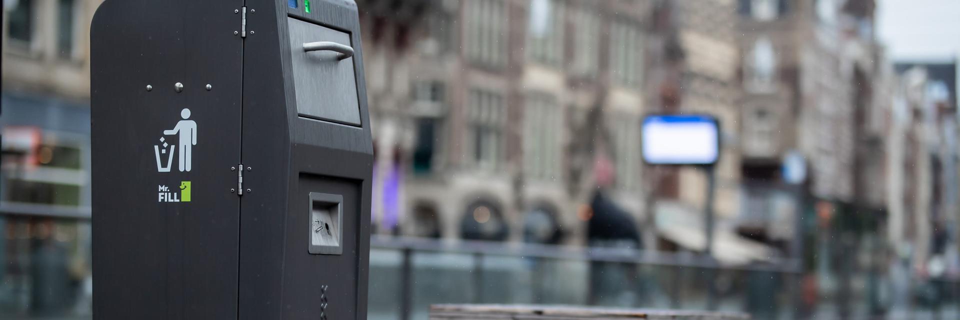 Una ciudad inteligente funciona a base de tecnología e innovación, lo cual incluye también los productos de gestión de residuos. El plan de Mr. Fill es convertirse en la solución preferida de todas las ciudades inteligentes en cuanto a la lucha contra la basura. El carácter inteligente de los bidones radica en dos sensores que detectan hasta qué punto está lleno el bidón, y en un compactador electrónico integrado que funciona con energía solar. El compactador puede procesar cinco veces más residuos que un bidón ordinario, lo cual resulta muy práctico en ciudades de gran tráfico humano como, por ejemplo, Ámsterdam. Sus bidones normales deben vaciarse siete veces al día, pero ahora Mr. Fill ha reducido el vaciado en más de la mitad. El resultado son menos basuras, menos emisiones de CO2 y un ahorro de costes de hasta el 75 %.