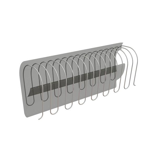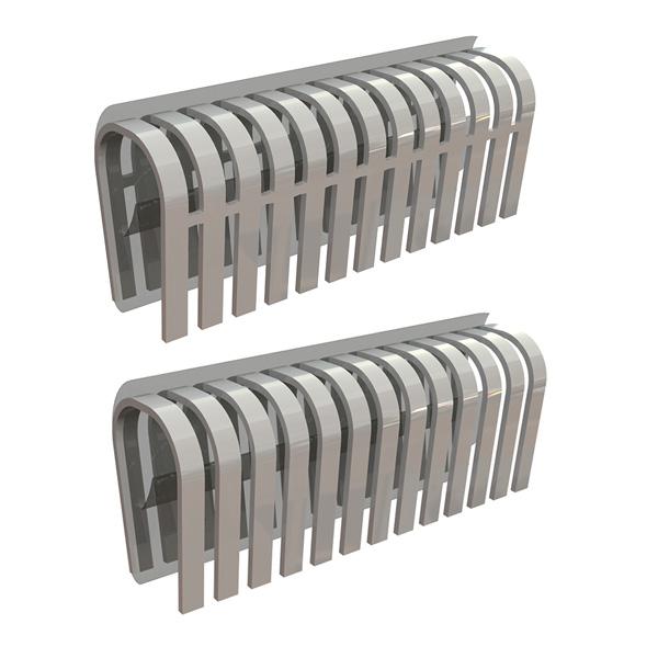 Profile with metal carrier unbroken (top) as a great grip on straight materials but is difficult to bend in curved areas as all clips are connected and made from one piece of metal. A profile with broken carrier (bottom) is easier to bend around curves as the clamps are "separated".
